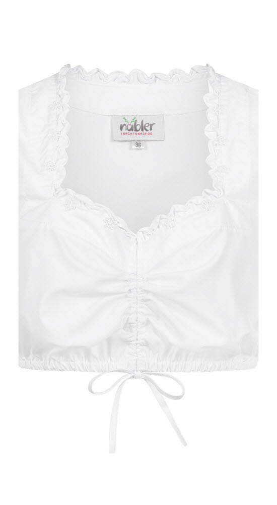 Die Dirndlbluse Isabel von Nübler ist nicht nur ein Hingucker, sondern auch super bequem! Die Dirndlbluse mit einem eckigen Ausschnitt bestickt mit zarten Blümchen Rund um den Ausschnitt und an den Ärmeln. Das Ende der Ärmel ist durch ein Gummizug leicht gerafft. Der Gummizug am Saum der Bluse garantiert einen festen Halt und sorgt für eine individuelle Passform.