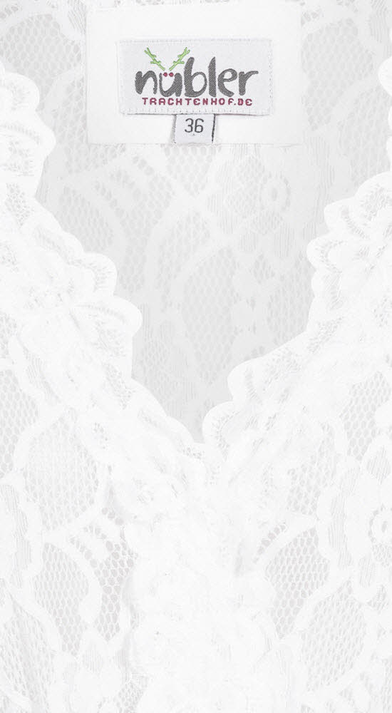 Die wunderschöne Dirndlbluse Laura aus dem Hause Nübler ist ein richtiger Hingucker. Der V-Ausschnitt gewährt hübsche Einblicke. Die transparente Spitze verleiht der Bluse den verspielten Touch. Diese Dirndlbluse verleiht Ihrem Dirndl den letzten Schliff und kann zu jedem Anlass, wie Hochzeit, Kommunion, Taufe, Firmung, Konfirmation, Familienfeier oder jedem anderen Fest getragen werden.