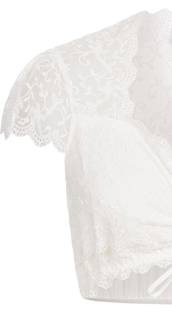 Eine sinnliche Verführung! Diese Dirndlbluse Lisa von Nübler ist unheimlich angenehm zu tragen. Auf der Vorderseite ist sie komplett aus einer verführerischen Spitze. Dabei ist die Bluse ab dem Brustbereich mit einem Stretch-Stoff unterfüttert. Durch die Raffung am Ausschnitt kann die Bluse individuell an Ihre Wünsche angepasst werden. Das Rückenteil ist im oberen Drittel aus der gleichen Spitze, der untere Teil ebenfalls aus Stretch-Stoff. Die niedlichen angeschnittenen Ärmel geben dem Ganzen das gewisse Etwas.