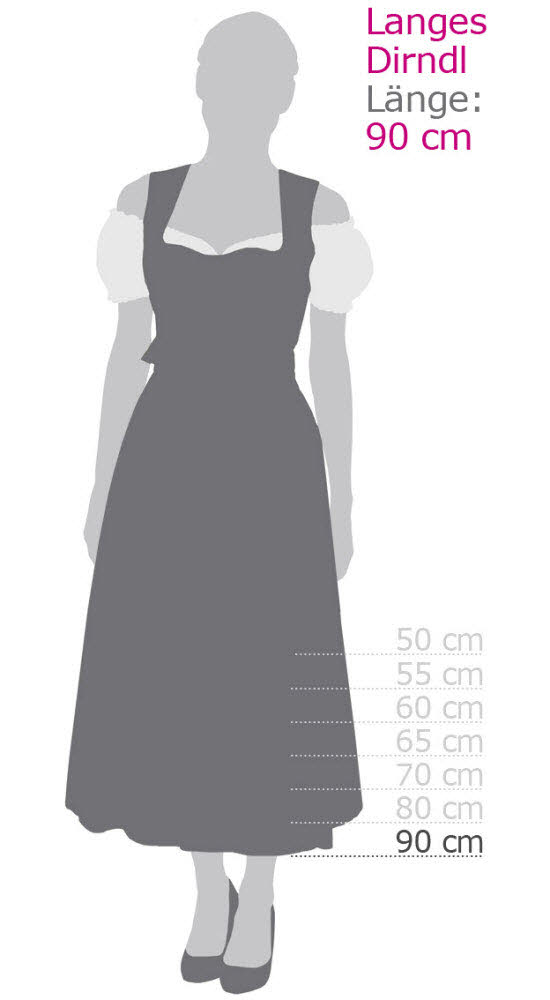 Das lange Dirndl Frau Wirtin in Schwarz ist ein klassisches Gastrodirndl. Das Modell wird ohne Bluse und Schürze geliefert. Es ist schlicht gehalten und wird vorne mit einem Reißverschluss verschlossen. Der Stoff des Dirndls ist etwas fester, schimmert ganz leicht und ist von einem Pflanzenmuster übersäht. Das Dirndl kann mit verschiedenen Schürzen kombiniert werden und bekommt so immer wieder einen neuen Look. Dieses lange Dirndl eignet sich hervorragend für Bedienungen, kann aber mit der passenden Schürze auch auf vielen Festlichkeiten getragen werden.
