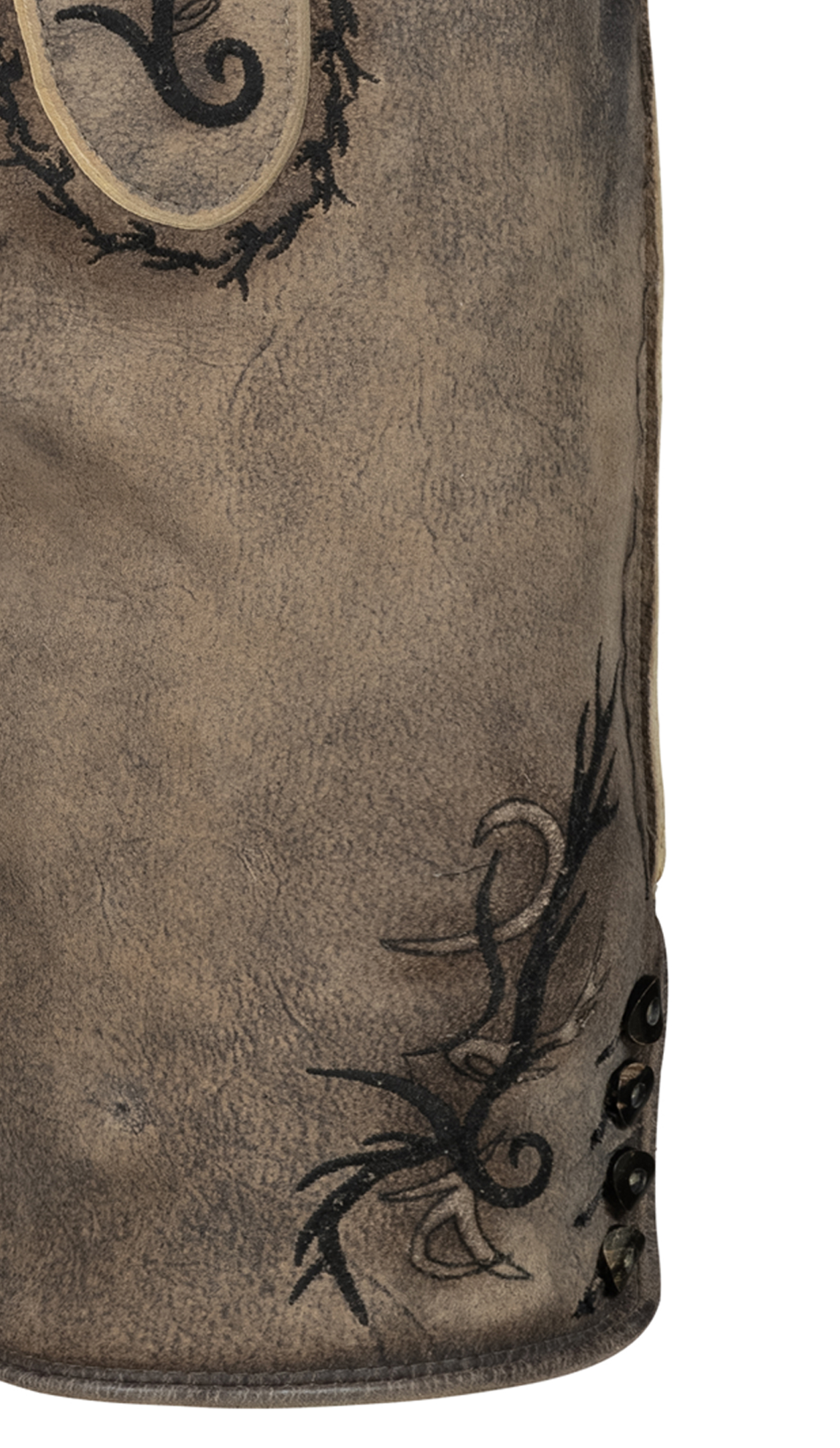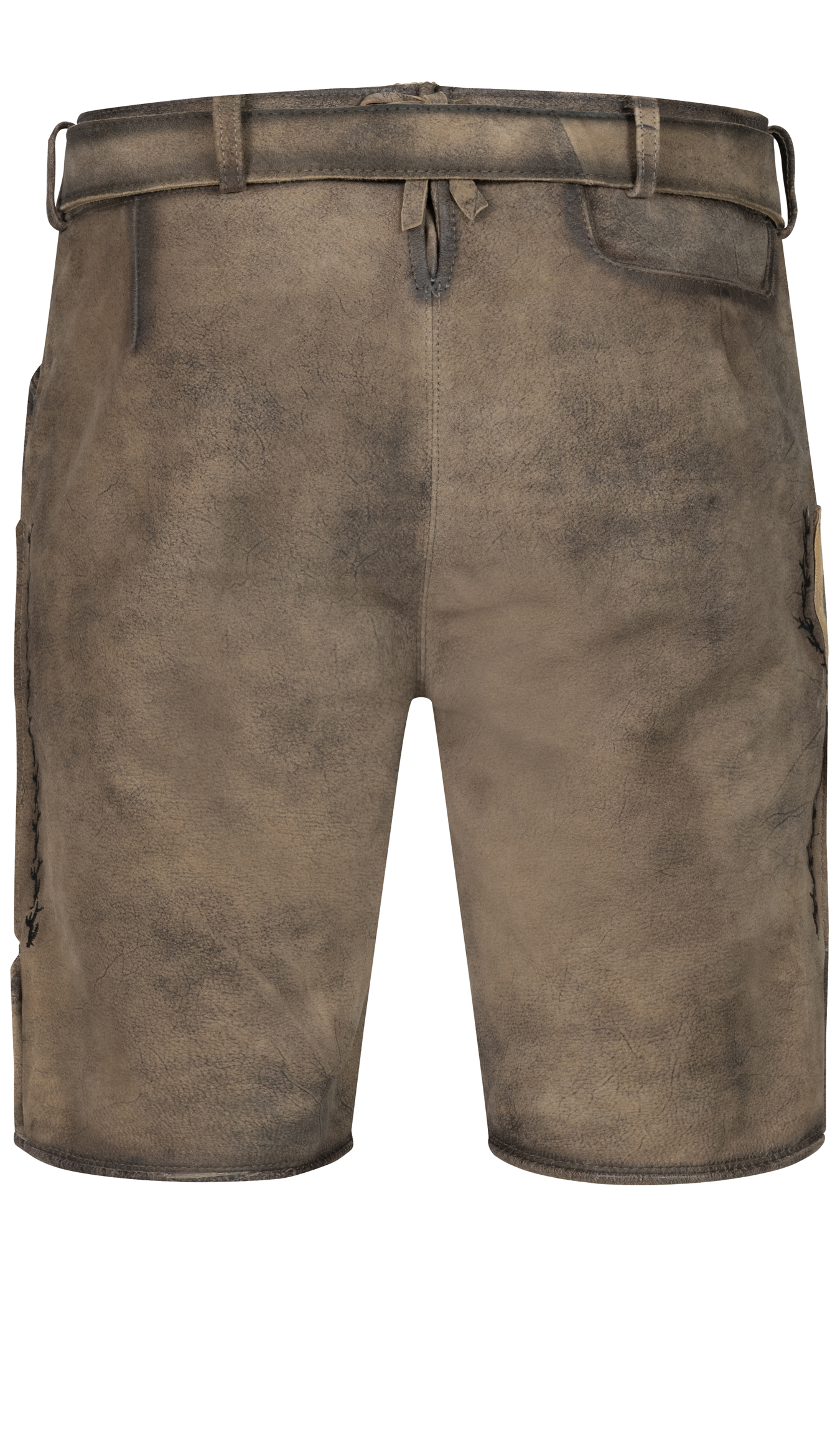 Sie suchen eine kurze Lederhose, die traditionell und modern zugleich ist?Dann ist diese Lederhose Sandro von Nübler genau das Richtige für Sie! Diese kurze Herren Lederhose in Braun besticht durch ihre aufwendigen Relief Stickereien, die dem Modell einen edlen Charakter verleihen. Die Lederhose ist aus hochwertigem Wildbock Leder gefertigt und hat einen angesagten used Look, der für einen lässigen und authentischen Stil sorgt. Die Lederhose verfügt über zwei Eingriffstaschen, eine kleine Seitentasche auf der rechten Seite sowie eine Gesäßtasche, die Ihnen genügend Stauraum für Ihre persönlichen Gegenstände bieten. Die obligatorische Brotzeitfalte und der Latz zum Aufknöpfen runden das Design ab.Als besonderes Schmankerl erhalten Sie zu dieser Lederhose einen passenden Ledergürtel samt Schnalle, die mit einem bayrischen Wappen verziert ist. Alle Knöpfe sind in Hirschhorn Optik gehalten und unterstreichen den traditionellen Charme dieser Lederhose.Diese Lederhose ist ein echter Hingucker und eignet sich perfekt für das Oktoberfest, Volksfeste oder andere Anlässe. Bestellen Sie diese Lederhose noch heute in unserem Shop und überzeugen Sie sich selbst von ihrer Qualität und ihrem Komfort!Lieferhinweis:Die Lederhose wird mit passendem Ledergürtel samt Schnalle geliefert.Tipp:Die Lederhose sollte beim Kauf eng sitzen, da sie sich nach Öfteren Tragen noch weitet. Wie stark sich die Lederhose weitet, richtet sich nach der Häufigkeit des Tragens. Generell gilt: Im Bund kann sich die Lederhose 2-3cm dehnen, im Oberschenkelbereich 3-5cm. Wichtig ist, dass die Lederhose im Schritt, an der Naht gut sitzt, da sie sich hier nicht mehr weitet.Pflegehinweis:Pflegen Sie Ihre Lederhose richtig. Die Lederhose ist ein empfindliches Kleidungsstück, das besondere Pflege benötigt. Waschen Sie die Lederhose nicht in der Waschmaschine oder im Trockner, sondern reinigen Sie sie nur mit einem feuchten Tuch oder einer speziellen Lederseife. Lagern Sie die Lederhose an einem trockenen und luftigen Ort.Material: 100% LederFutter: 100% Cotton