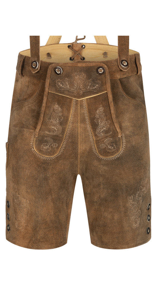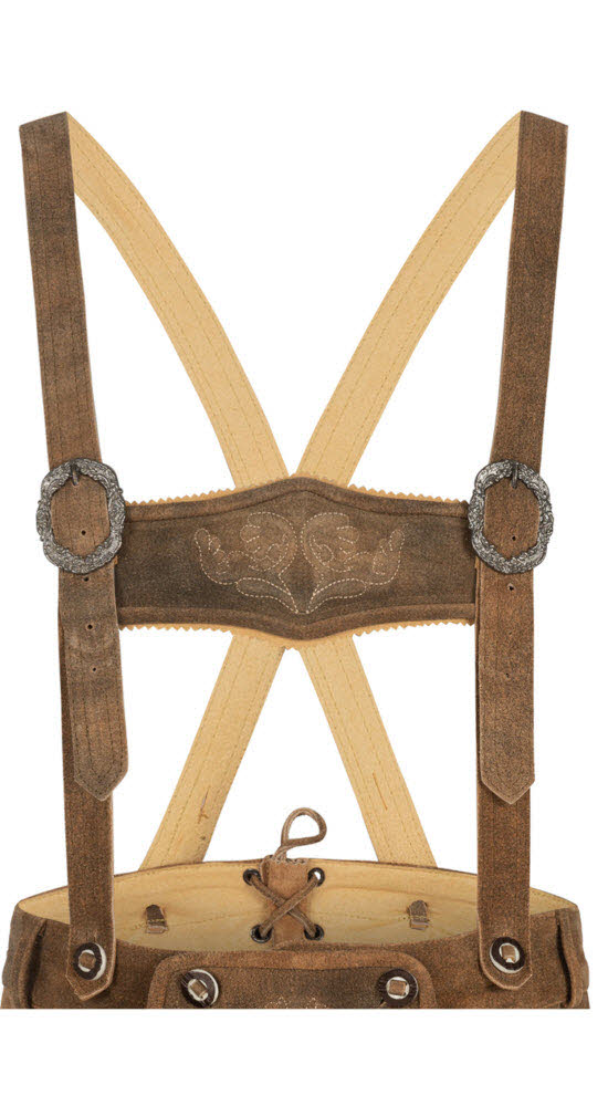 Die Lederhose wird mit den passenden Lederhosen-Trägern geliefert