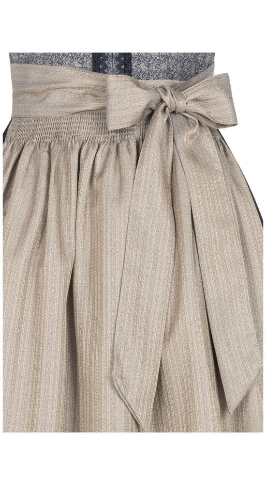 Verzaubern Sie sich und Ihre Liebsten mit diesem wunderschönen midi Dirndl im Landhausstil, das Tradition und Moderne perfekt vereint. Das Mieder ist mit einem floralen Vintage Muster verziert, das einen romantischen Charme ausstrahlt. Der eckige Ausschnitt ist mit einer farblich abgestimmten Borte umrandet, die Ihre Figur betont. Ein praktischer Reißverschluss auf der Vorderseite erleichtert das An- und Ausziehen, während eine Miederhaken Brosche einen edlen Akzent setzt. Der in Falten gelegte Dirndlrock schwingt bei jedem Schritt mit und bietet Ihnen dank der seitlichen Eingriffstaschen genügend Stauraum für Ihre Kleinigkeiten. Mit der Dirndl Schleife können Sie das Kleid individuell schnüren und Ihre Taille in Szene setzen. Die gestreifte Dirndlschürze in einem eleganten Taube Farbton rundet das Outfit ab und verleiht ihm einen frischen Touch. Dieses midi Dirndl ist ideal für jeden Anlass, ob Oktoberfest, Hochzeit oder Familienfeier. Bestellen Sie es noch heute und lassen Sie sich von seiner Qualität und seinem Komfort überzeugen.