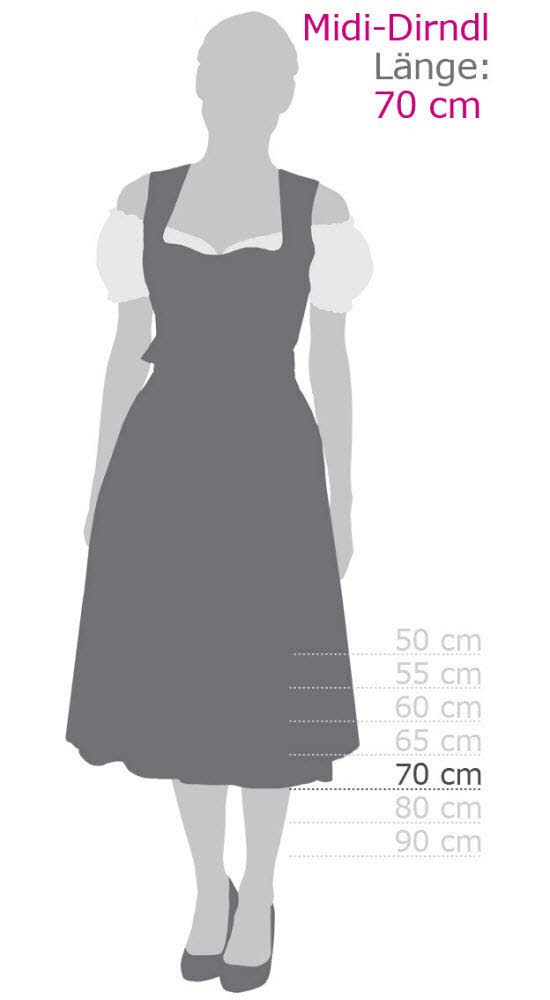 Unsere Dirndl werden, soweit nicht anders vermerkt, ohne Dirndlbluse, passenden Accessoires und Schuhen geliefert.