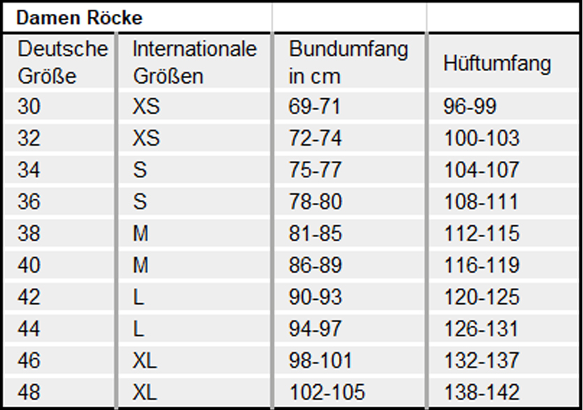 - Rocklänge (optional): Ab Taille bis gewünschte Länge messen.